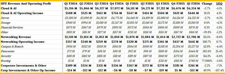 is a full breakdown of the revenues and profits of the new HPE groups and