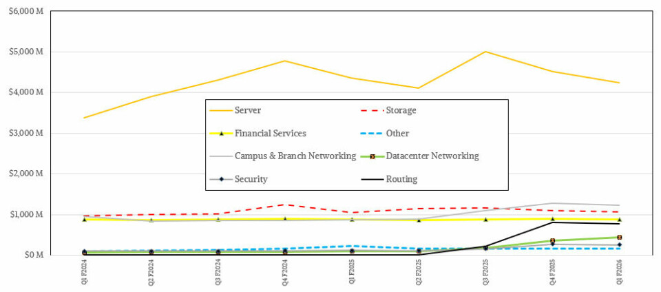 storage, switching and now routing, security, systems software, and financing